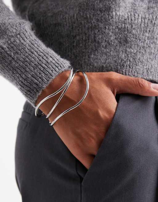 ASOS DESIGN – Silverfärgat, virvlat cuff-armband