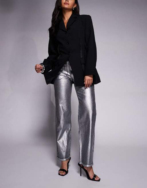 ASOS DESIGN – Silverfolierade jeans med raka ben och bekväm stretch