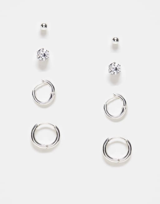 ASOS Design – Silverpläterade örhängen, stift resp creoler med strass, 4-pack