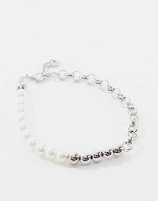 ASOS DESIGN – Silvrigt armband med kedjor och pärlor