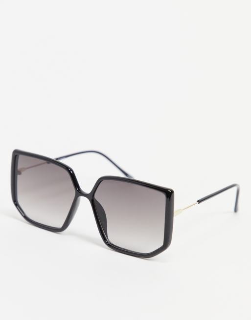ASOS DESIGN – Skinande svarta solglasögon i oversize med tubdesign och 70-talsstil