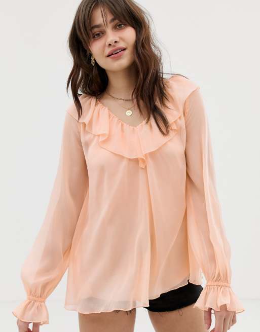 ASOS DESIGN – Skir blus med lång ärm och volangdetalj