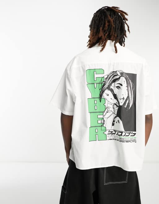 ASOS DESIGN – Skjorta i boxig passform med tryck baktill