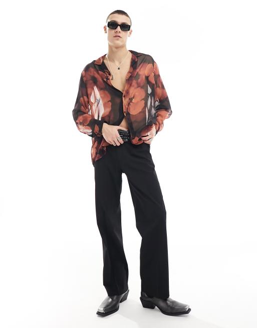 ASOS DESIGN – Skjorta med avslappnad passform, platt krage och blommigt tryck