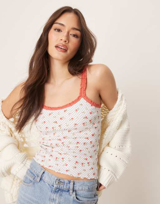 ASOS DESIGN – Småmönstrat och prickigt linne med kantdetaljer