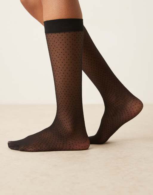 ASOS DESIGN – Småprickiga, skira, knähöga strumpor