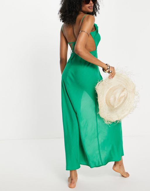 ASOS DESIGN – Smaragdgrön strandklänning med låg rygg och draperad detalj