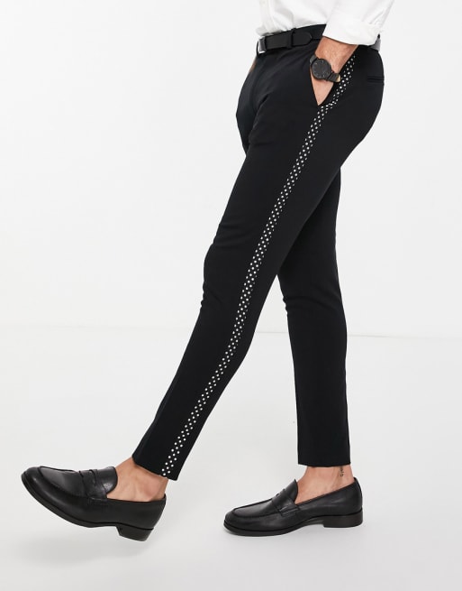 ASOS DESIGN – Smoking i supersmal passform med svartvita, prickiga detaljer