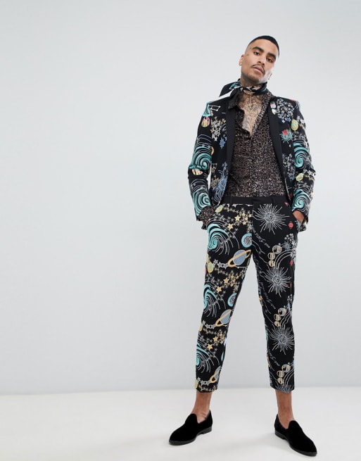ASOS DESIGN – Smokingkostym med extra smal passform och rymdbroderi