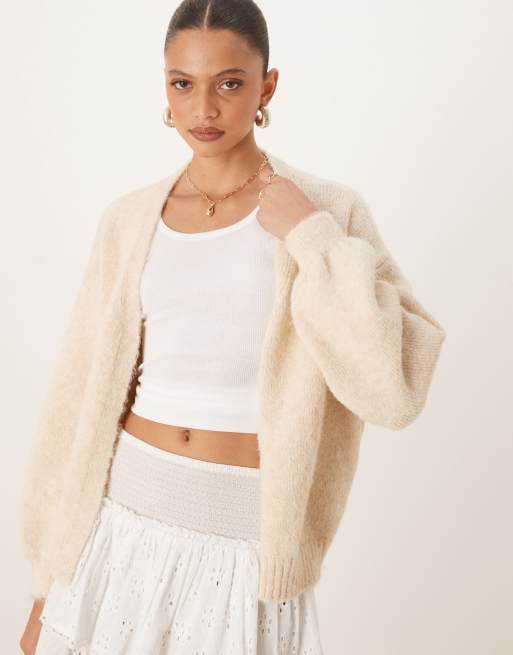 ASOS DESIGN – Smörvit kofta i oversize och yllemix med ballongärmar