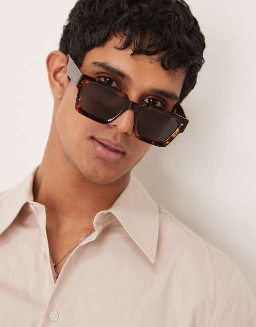 ASOS DESIGN – Spräckliga, fyrkantiga, fasade solglasögon