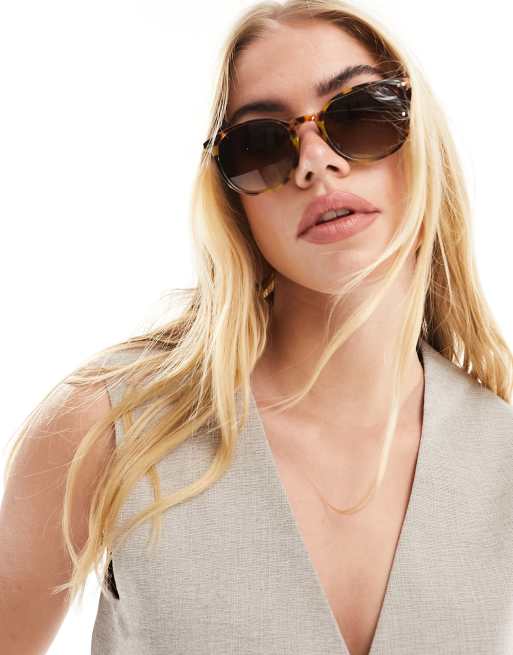 ASOS DESIGN – Spräckliga, runda solglasögon med tunna bågar och bruna glas
