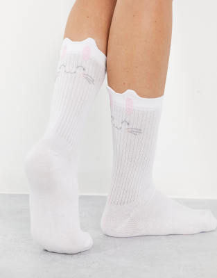 ASOS DESIGN – Spring Festival – Vita, ribbade strumpor med kanin