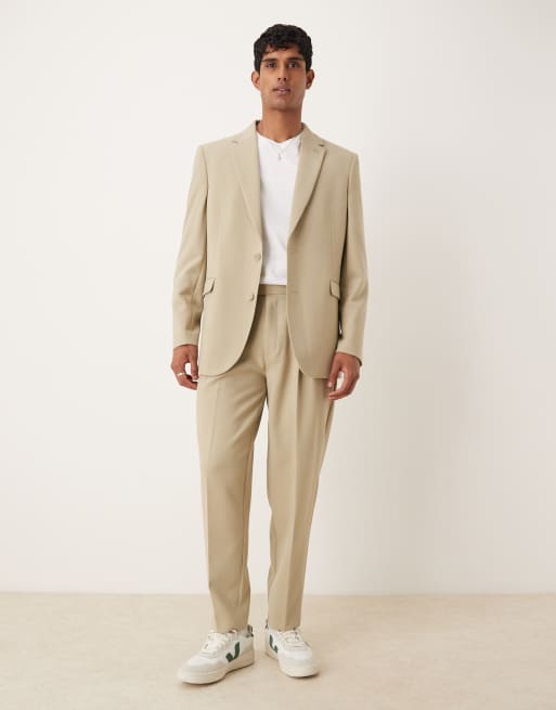 ASOS DESIGN – Stenfärgad, avslappnad kostym i lång modell