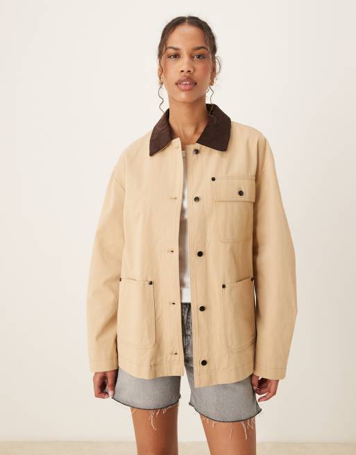 ASOS DESIGN – Stenfärgad, enkel arbetsjacka med manchesterkrage