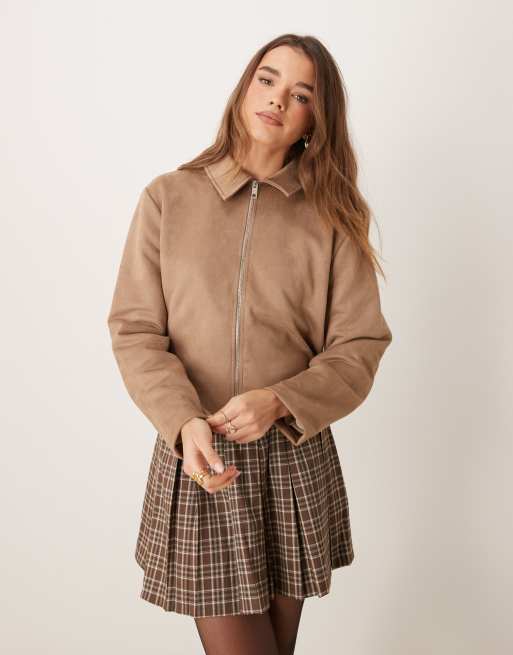 ASOS DESIGN – Stenfärgad jacka i mockaimitation med krage