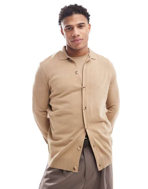 ASOS DESIGN – Stenfärgad, stickad pikétröja med knäppning, del av set