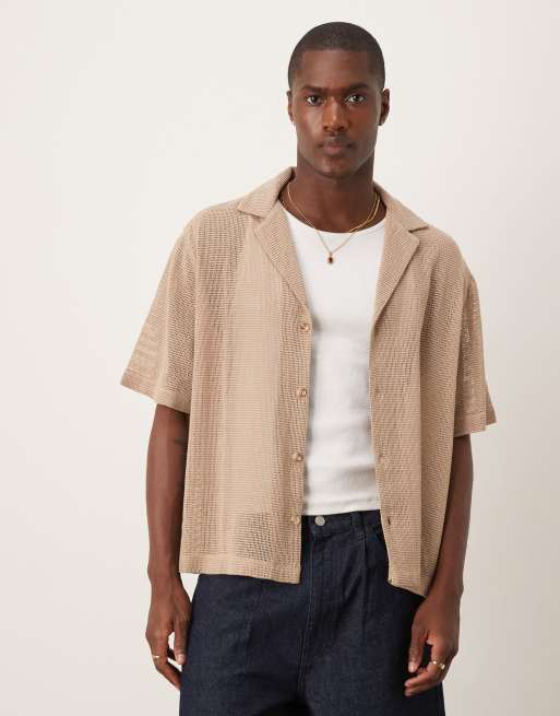 ASOS DESIGN – Stenfärgad, strukturerad skjorta med boxig passform och bred, platt krage
