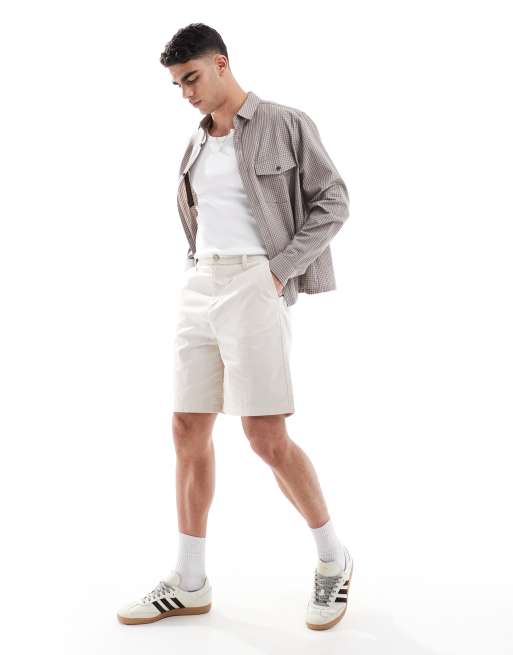 ASOS DESIGN – Stenfärgade, mellanlånga shorts i linnemix
