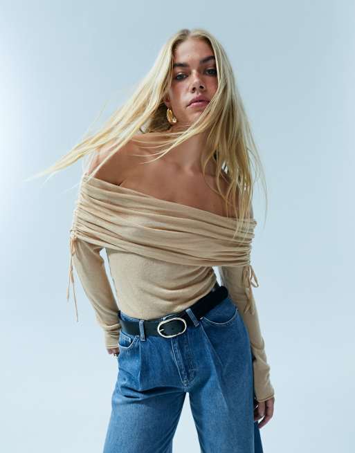 ASOS DESIGN – Stickad, draperad topp i ullmix med bara axlar
