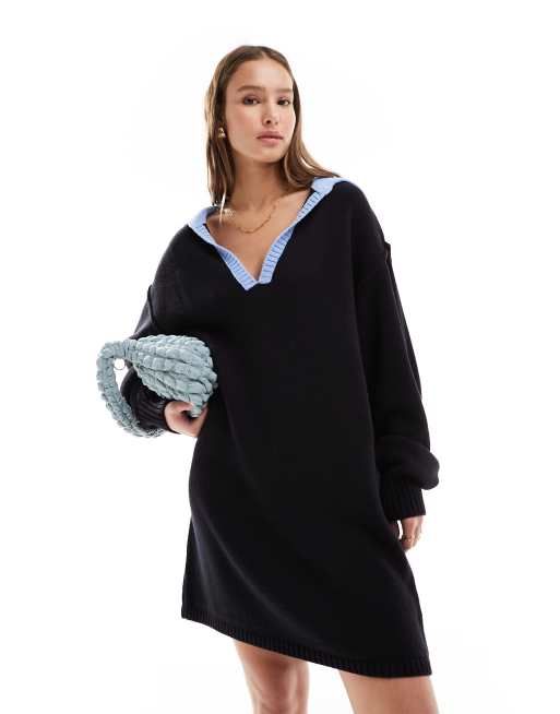 ASOS DESIGN – Stickad mini-skjortklänning i rugbystil