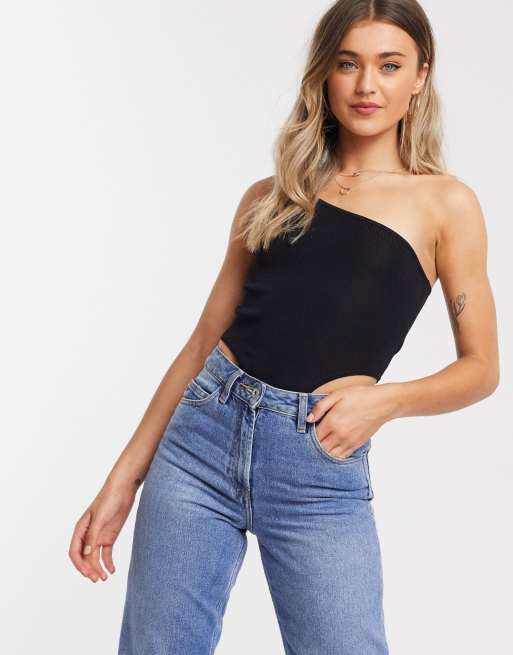 ASOS DESIGN – Stickad one shoulder-body