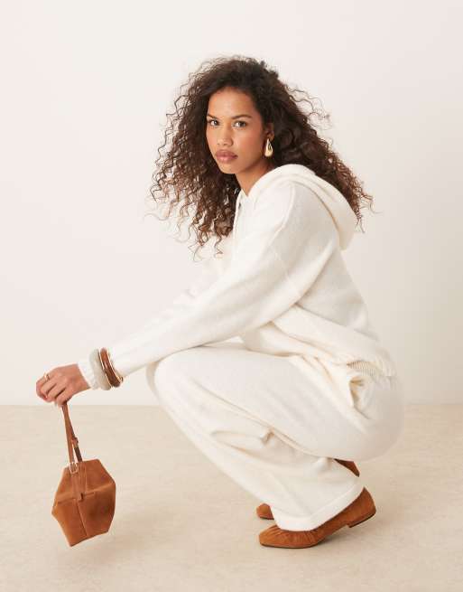 ASOS DESIGN – Stickade, fluffiga byxor med vida ben, del av set