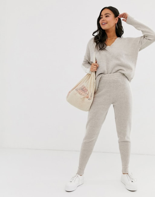 ASOS DESIGN – Stickat set med tröja och mjukisbyxor med kantrand