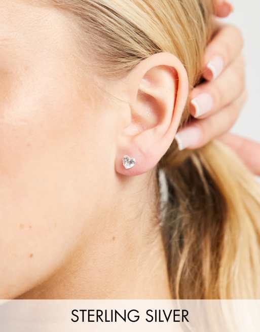 ASOS DESIGN – Stiftörhängen av äkta silver med hjärtkristall