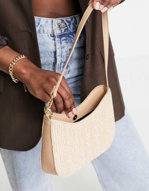 ASOS DESIGN – Stråfärgad axelväska med kedjelänkar