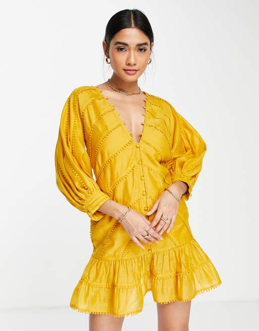 ASOS DESIGN – Strukturerad miniklänning med spetsdetaljer och puffärmar