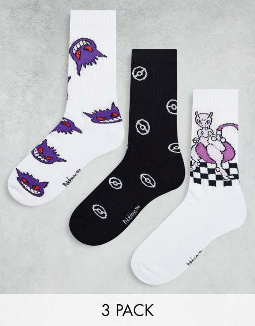 ASOS DESIGN – Strumpor med Pokémon Gengar och Mewtwo, 3-pack