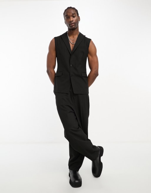 ASOS DESIGN – Svart ärmlös kostym