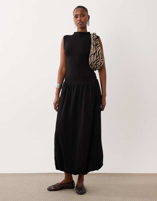 ASOS DESIGN – Svart, ärmlös maxiklänning med hög krage och sänkt midja