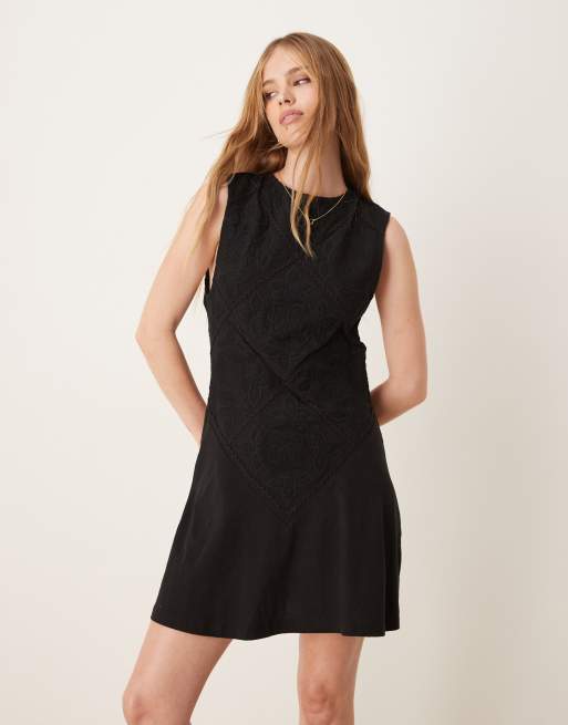 ASOS DESIGN – Svart, ärmlös miniklänning med virkad detalj