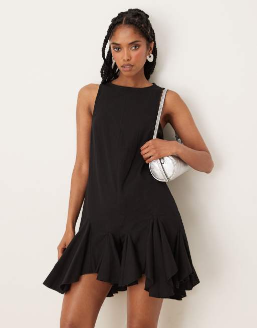 ASOS DESIGN – Svart, ärmlös playsuit med klockad kjol