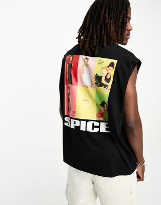 ASOS DESIGN – Svart, ärmlös t-shirt i oversize med Spice Girls-tryck