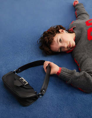 ASOS DESIGN – Svart, avlång axelväska med spänne