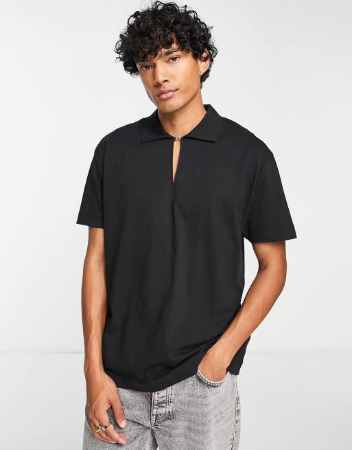 ASOS DESIGN – Svart, avslappnad pikétröja med spänne