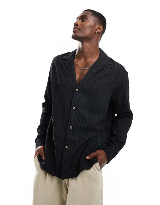 ASOS DESIGN – Svart avslappnad skjorta med platt krage