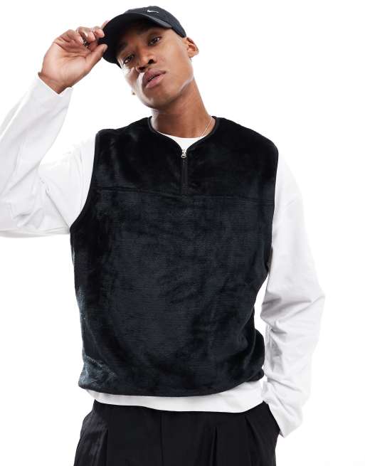 ASOS DESIGN – Svart, avslappnad väst i fuskpäls med kvartslång dragkedja