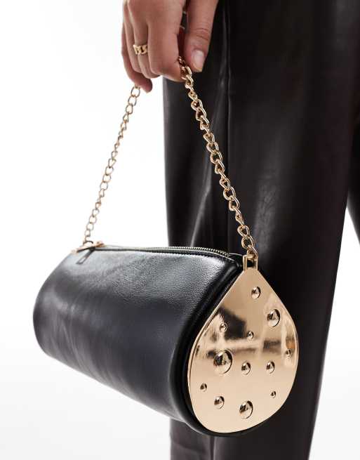ASOS DESIGN – Svart axelväska med metalldetaljer och kedjerem