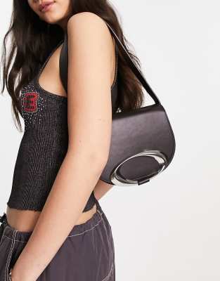 ASOS DESIGN – Svart axelväska med rund metalldetalj
