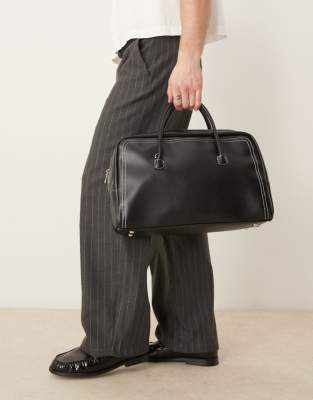 ASOS DESIGN – Svart bag i läderimitation med kontrastsömmar