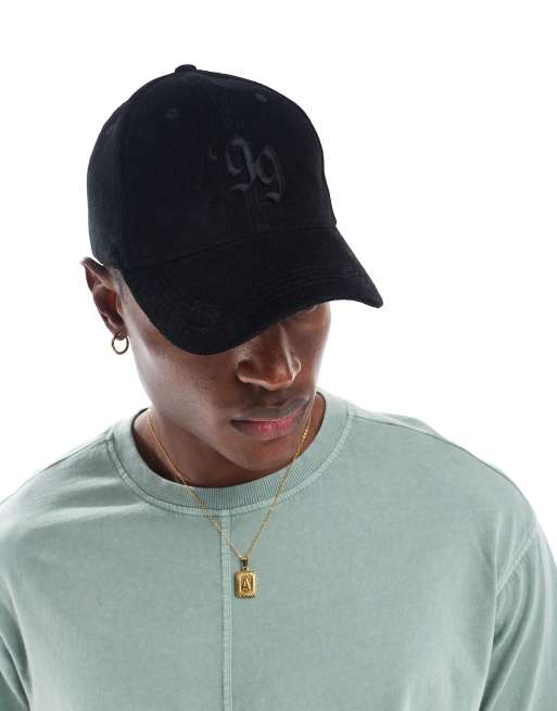 ASOS DESIGN – Svart baseball-keps i manchester med tryck