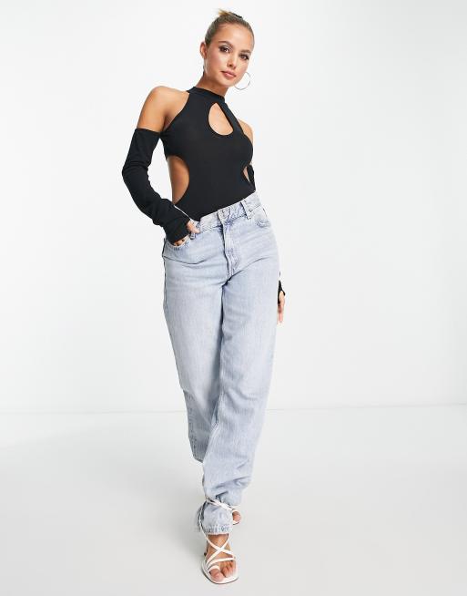 ASOS DESIGN – Svart body med bara axlar, långa ärmar och utskurna detaljer