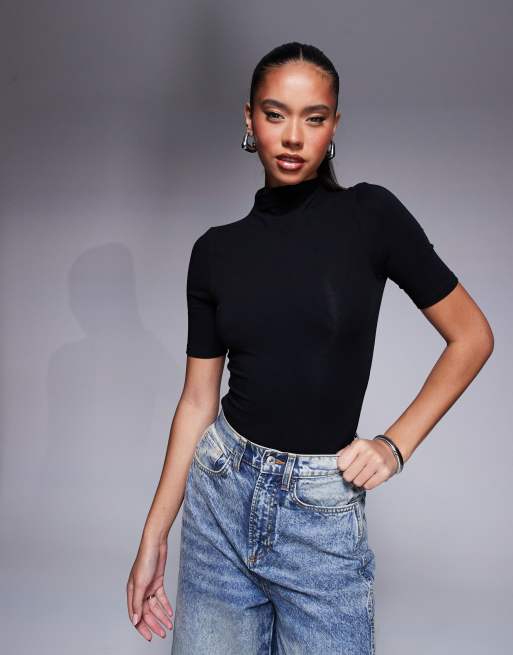 ASOS DESIGN – Svart body med hög krage och 3/4-långa ärmar