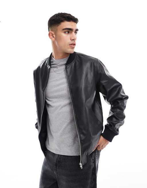 ASOS DESIGN – Svart bomberjacka i läderimitation