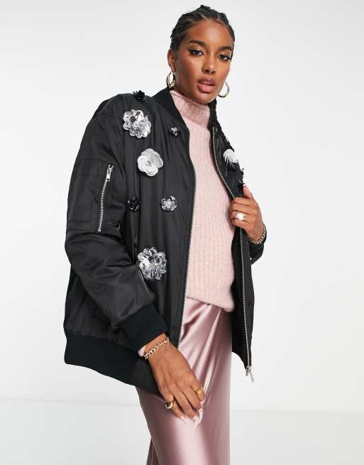 ASOS DESIGN – Svart bomberjacka med utsmyckning