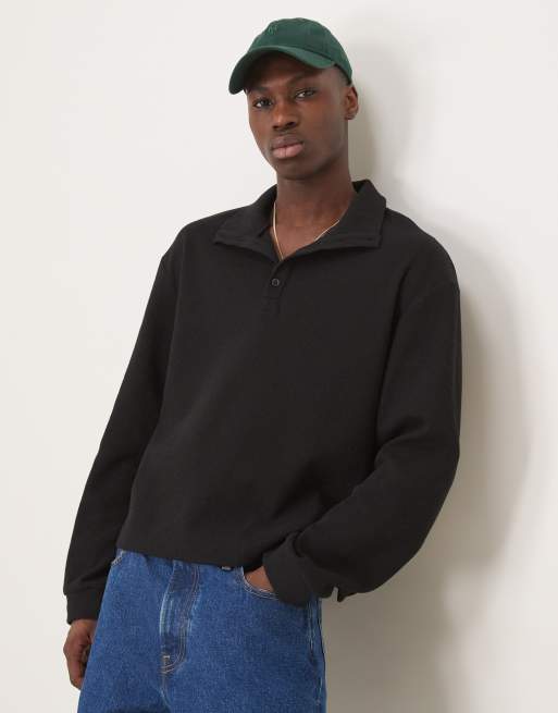 ASOS DESIGN – Svart, borstad och boxig sweatshirt i oversize med sänkt axelsöm, våffeltextur och ståkrage
